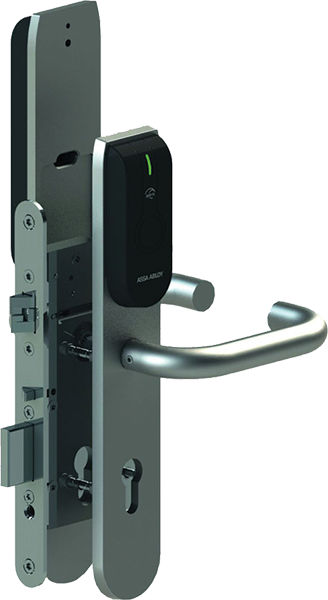 Aperio® electromechanical lock with door handle and Mifare® reader – European profile L100